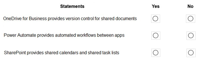 Instructions: For each of the following statements, select Yes if the statement is true.