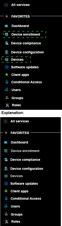 In the Microsoft 365 Device Management portal, which two blades should you use? To