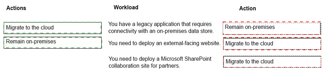 Which workloads you can migrate to the cloud? To answer, drag the appropriate actions to
