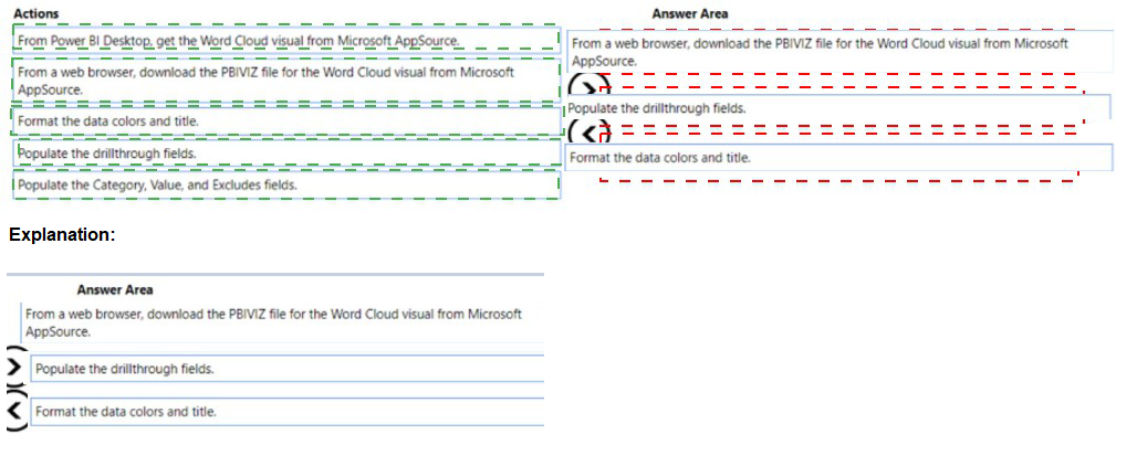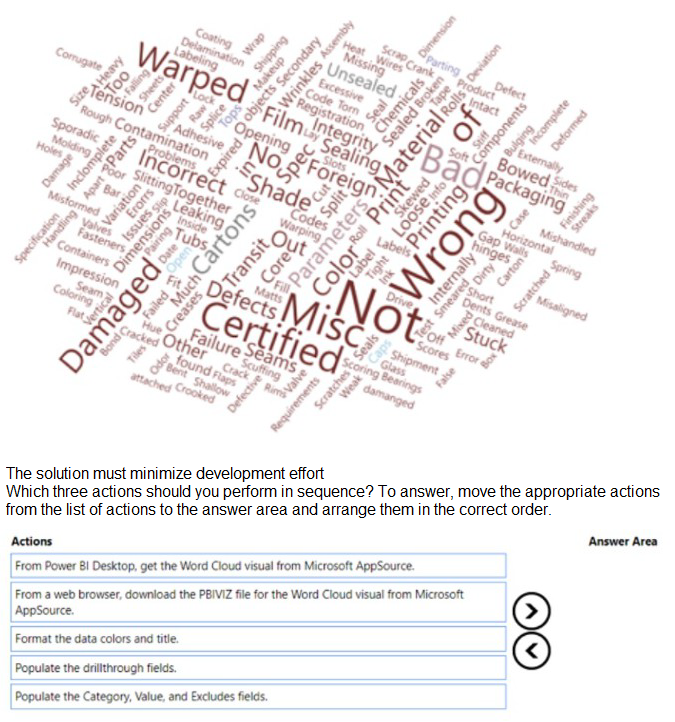 You use Power Bi Desktop to create a Power Bl data model and a blank report You need to add the Word Cloud visual shown in the following exhibit to the report.