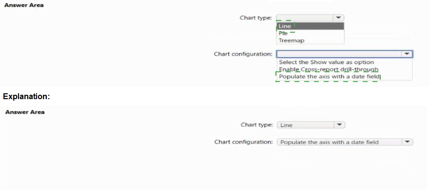 You need to enable users to choose between viewing the report as a line chart or a column chart. The solution must minimize development and maintenance effort.