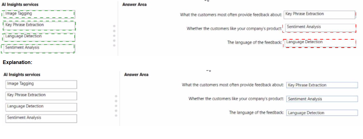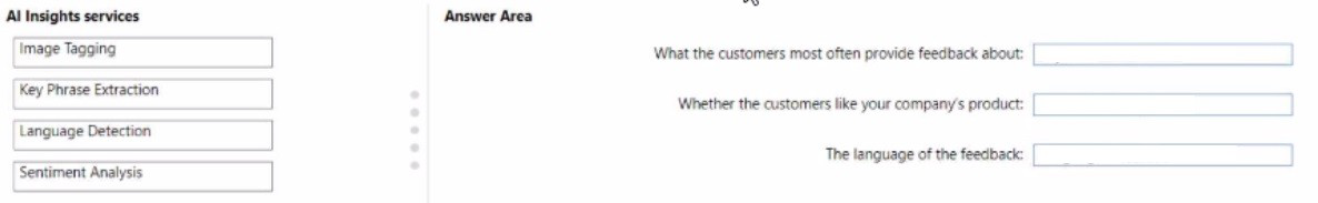 You need to use Al Insights to add a column of enhanced data based on the customer feedback. The solution must identify the following: