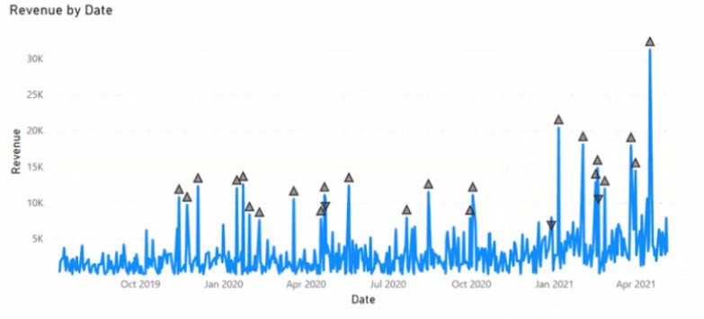 You need to use anomaly detection in Power Bl to show anomalies in the dataset.