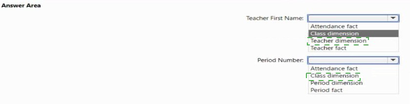 You plan to create a Power Bl dataset to analyze attendance at a school. Data will come from two separate views named View1 and View? in an Azure SQL database. View1 contains the columns shown in the following table.