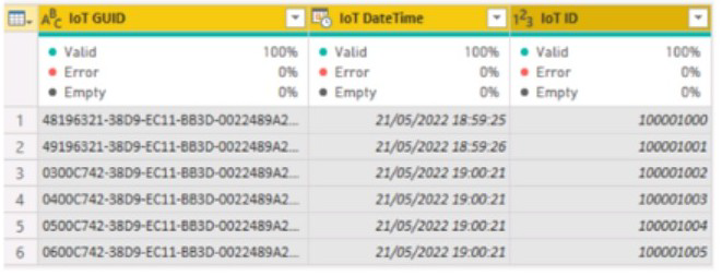 The IoT GUID and IoT ID columns are unique to each row in query.