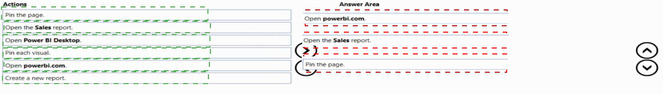 You need to add all the visuals from Sales to a dashboard. The solution must ensure that additional visuals added to the page are added automatically to the dashboard.