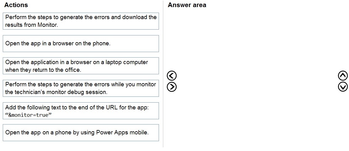 Technicians report issues with the model-driven app. You are unable to reproduce the