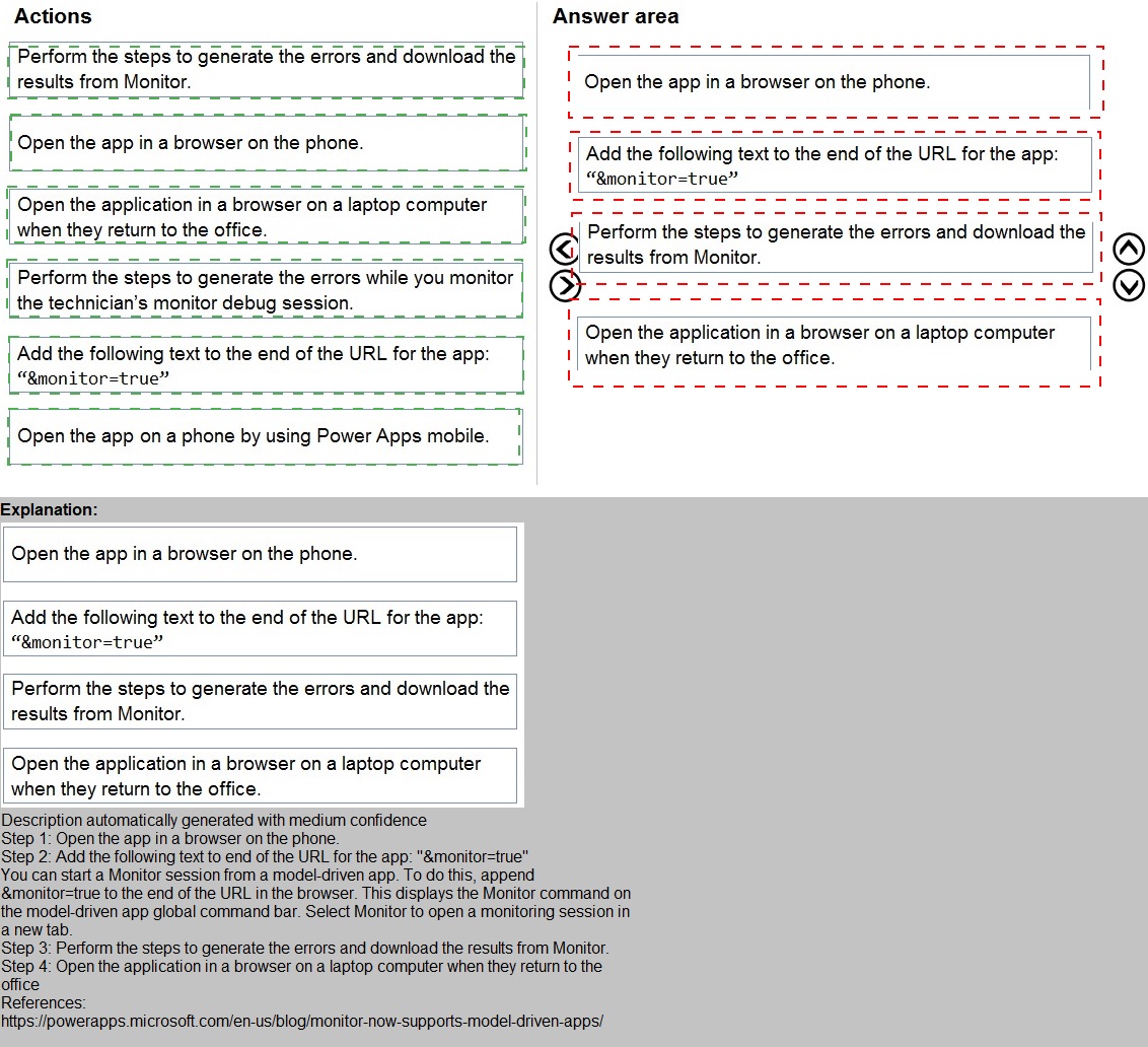 the appropriate actions from the list of actions to the answer area and arrange them in the