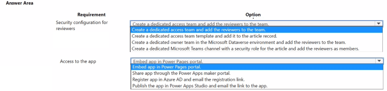 You design a Microsoft Power Platform app for a company. The company has the following