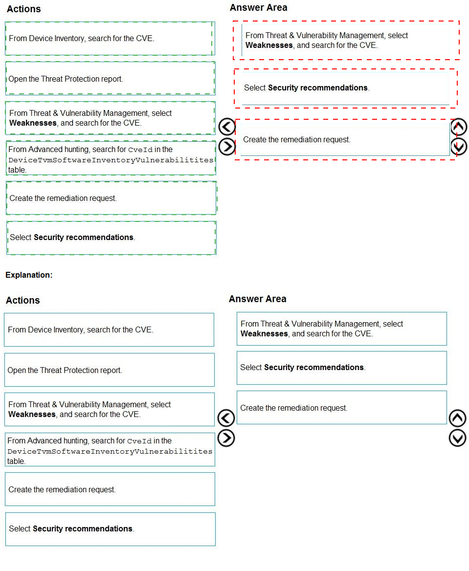 actions from the list of actions to the answer area and arrange them in the correct order.