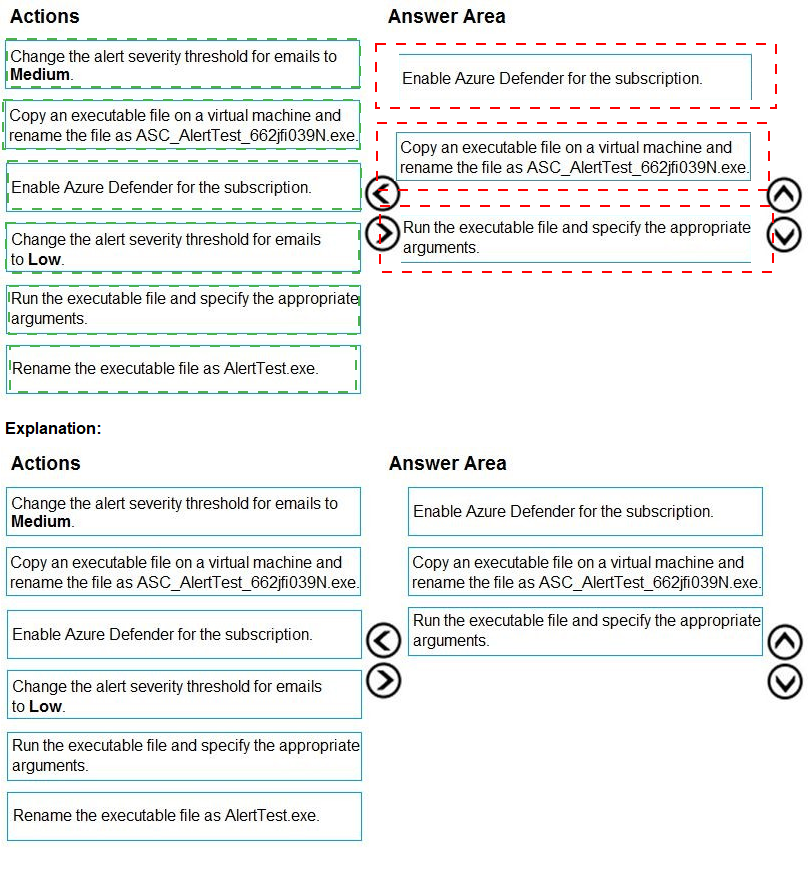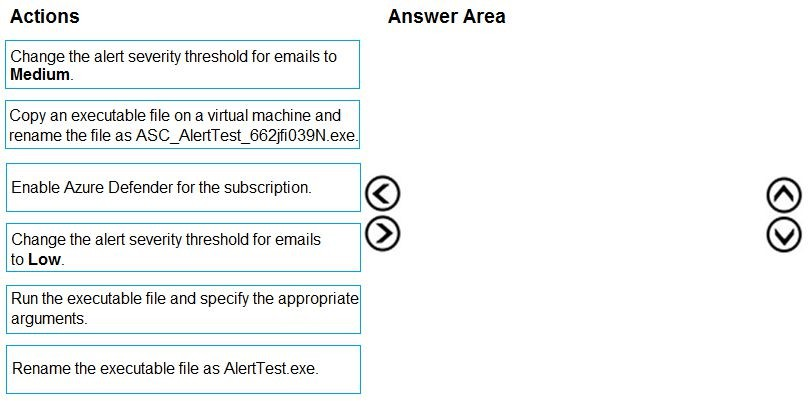 These actions are unrelated. The question is about detecting threats on Azure virtual machines, not configuring email notification filters for alerts. Severity thresholds for emails are for tuning notifications, not enabling or validating the underlying detection.