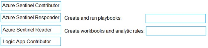 This question is about applying the principle of least privilege when assigning Azure built-in roles for specific Azure Sentinel administrative tasks. The roles must grant only the permissions necessary to perform the defined task and nothing more.