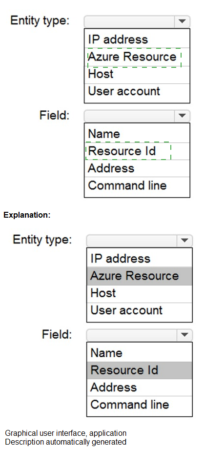 Which entity type and field should you use in a suppression rule? To answer, select the