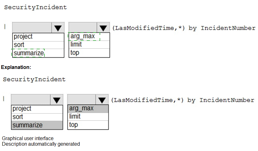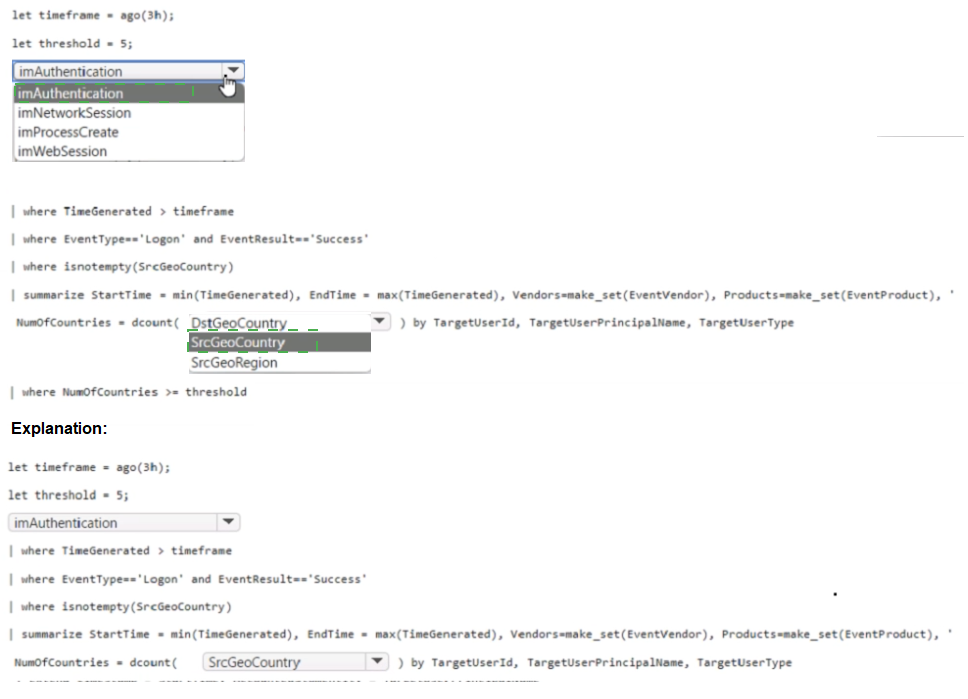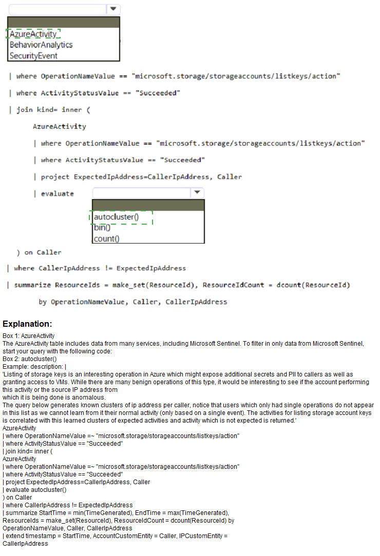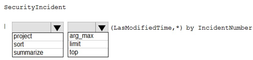 How should you complete the query? To answer, select the appropriate options in the
