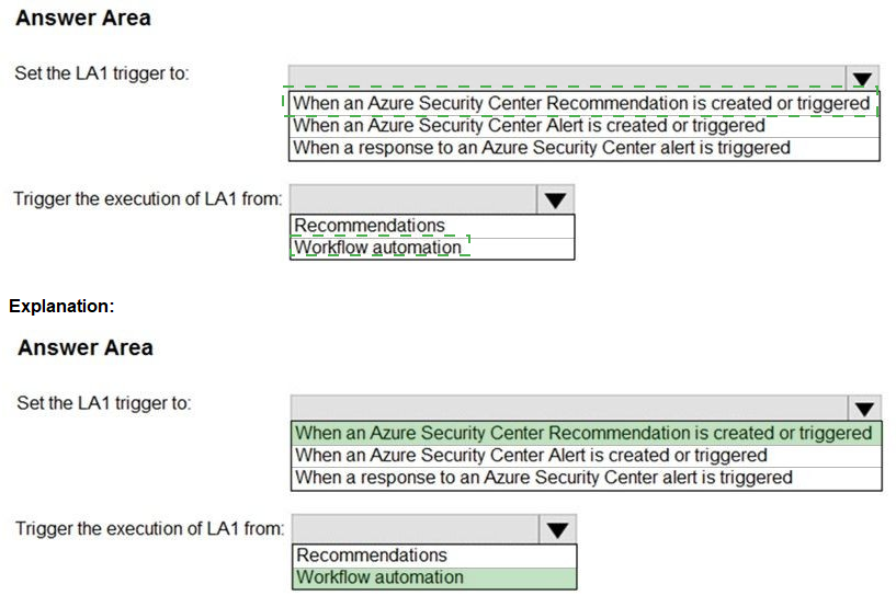 You plan to use LA1 to automatically remediate security risks detected in Azure Security