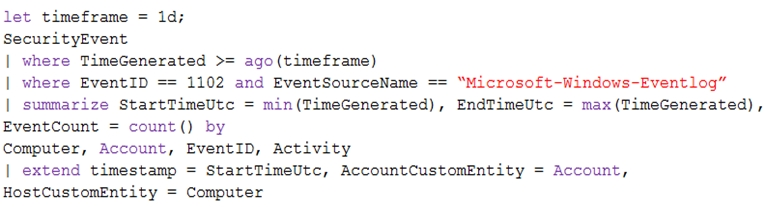 You need to create a query for a workbook. The query must meet the following
