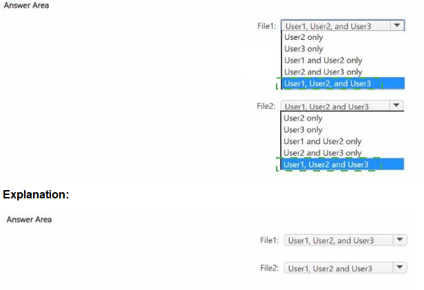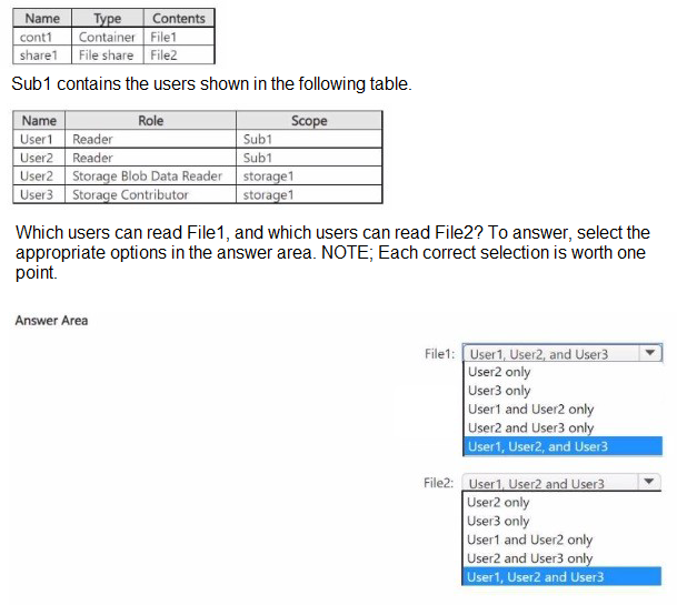 You have an Azure subscription named Sub1 that contains three users named User1. User2, and User3. Sub1 has a storage account named storage1 that contains the resources shown in the following table.