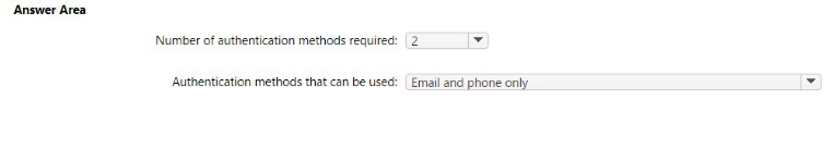 Number of methods required: Azure AD SSPR allows administrators to set a policy requiring a user to successfully complete 1 or 2 authentication methods to reset their password. The industry best practice and most common secure configuration is 2. The user must successfully respond to the challenges for this number of distinct methods.